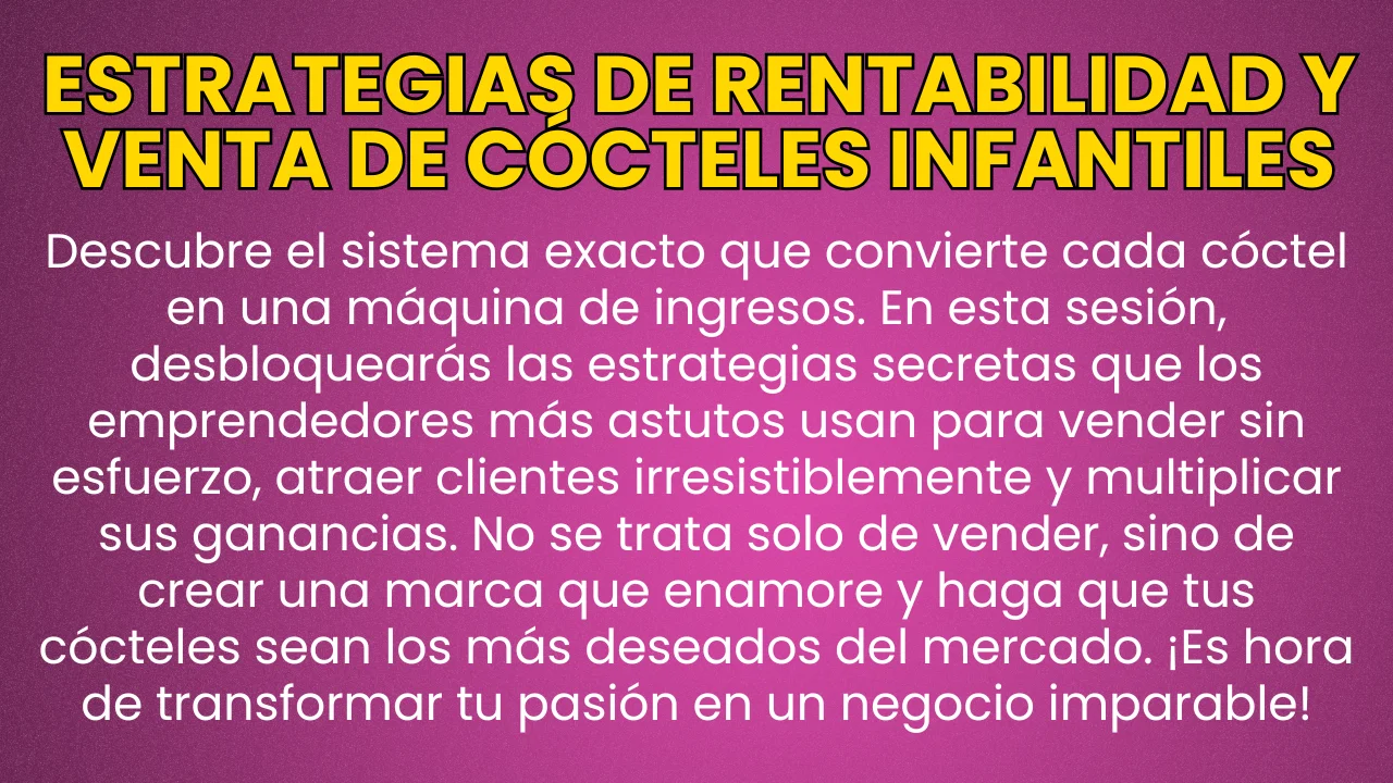 «Descubre el método más fácil para crear y vender Cócteles Infantiles Irresistibles, incluso si nunca has preparado una bebida antes.» 🚀🍹